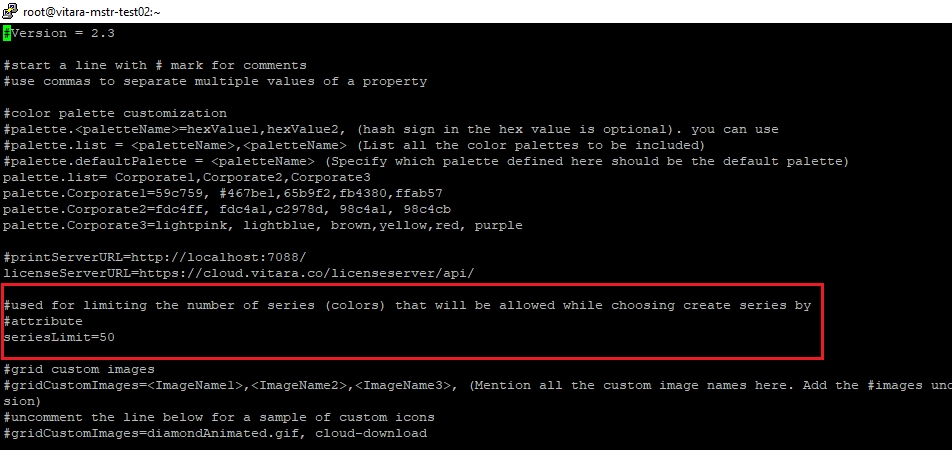 However, we can increase the series limit by modifying the global.txt file. The location of global.txt file is: webapps/MicroStrategy/plugins/VitaraCharts/custom/