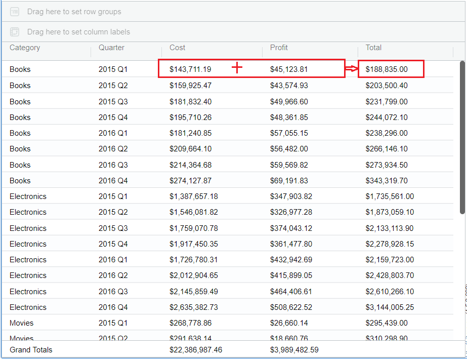 ## Column totals when Grouping is enabled <a href="#column-totals-when-grouping-is-enabled" id="column-totals-when-grouping-is-enabled"></a>