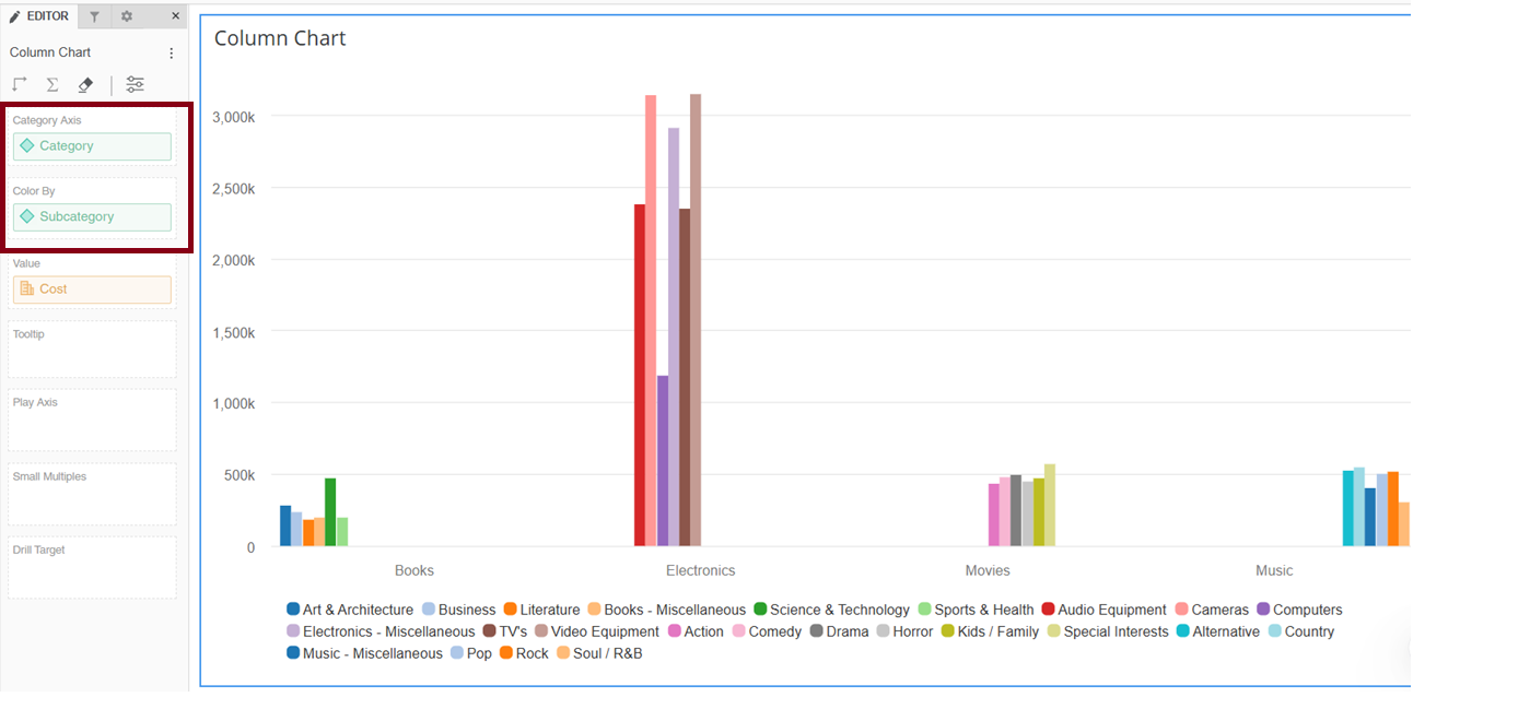 Users can also create a chart using the Color By drop zone. Refer to the screenshot below for guidance.