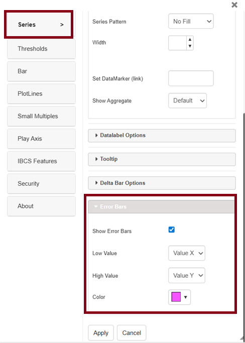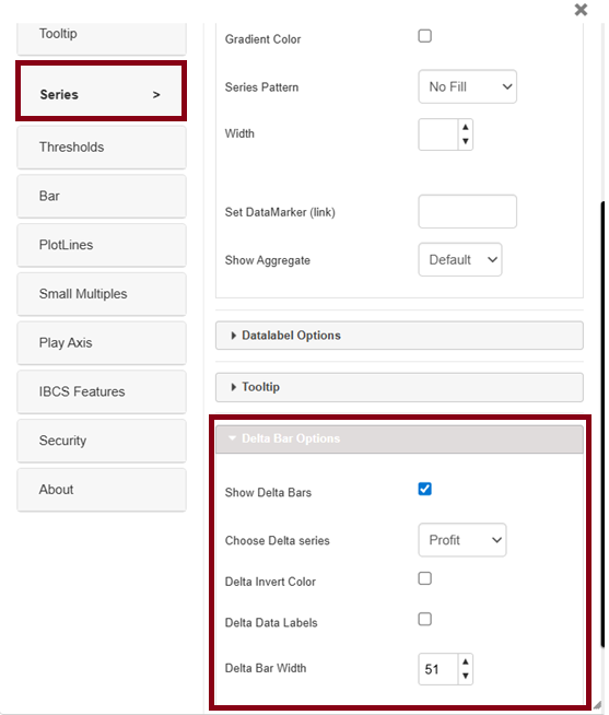 * There are also options to enable delta Labels, set delta Bar width, and invert delta Bar colors.