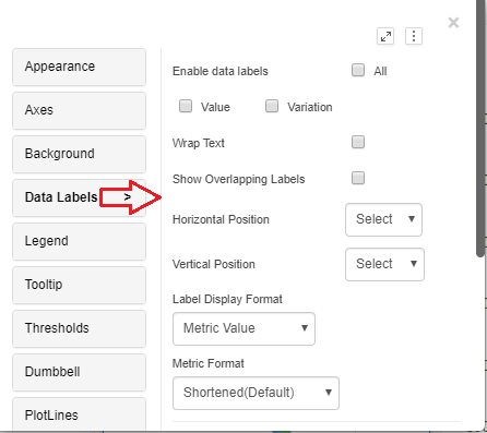 We can now display data labels inside the marker starting with version 5.2. Labels inside markers in a dumbbell chart improve data comprehension and context. The objective of the chart is clarified by inserting labels within markers, which generally reflect the chart’s initial and final values. This approach allows for the instant identification of data points, allowing viewers to directly compare numbers and understand changes. Labels provide additional information, such as background or explanations, that helps to clarify the relevance of the data being displayed. This method saves space and reduces visual clutter because labels are confined within markers. This functionality can be enabled by going to the editor’s data labels property and checking the “Label inside the marker” check box.