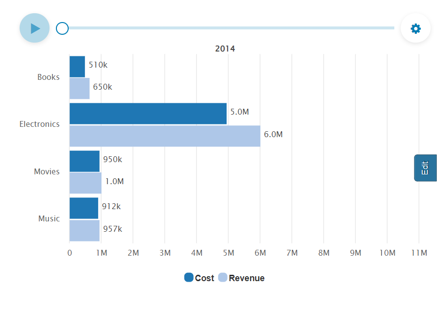 Hover the pointer over the chart to reveal the ‘Edit’ button on the right side. Select the ‘Edit’ button. We have checked the box ‘Play by First Attribute’ in the ‘Appearance’ attribute. Check this box to enable play animation in the chart.