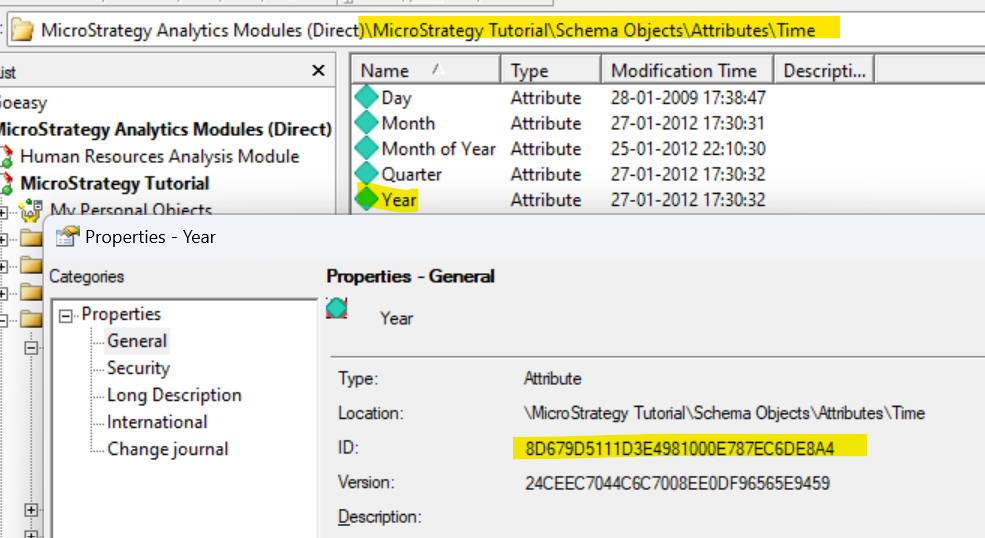 * Copy the Object ID for the respective attribute (in this example, Year) from the project.
